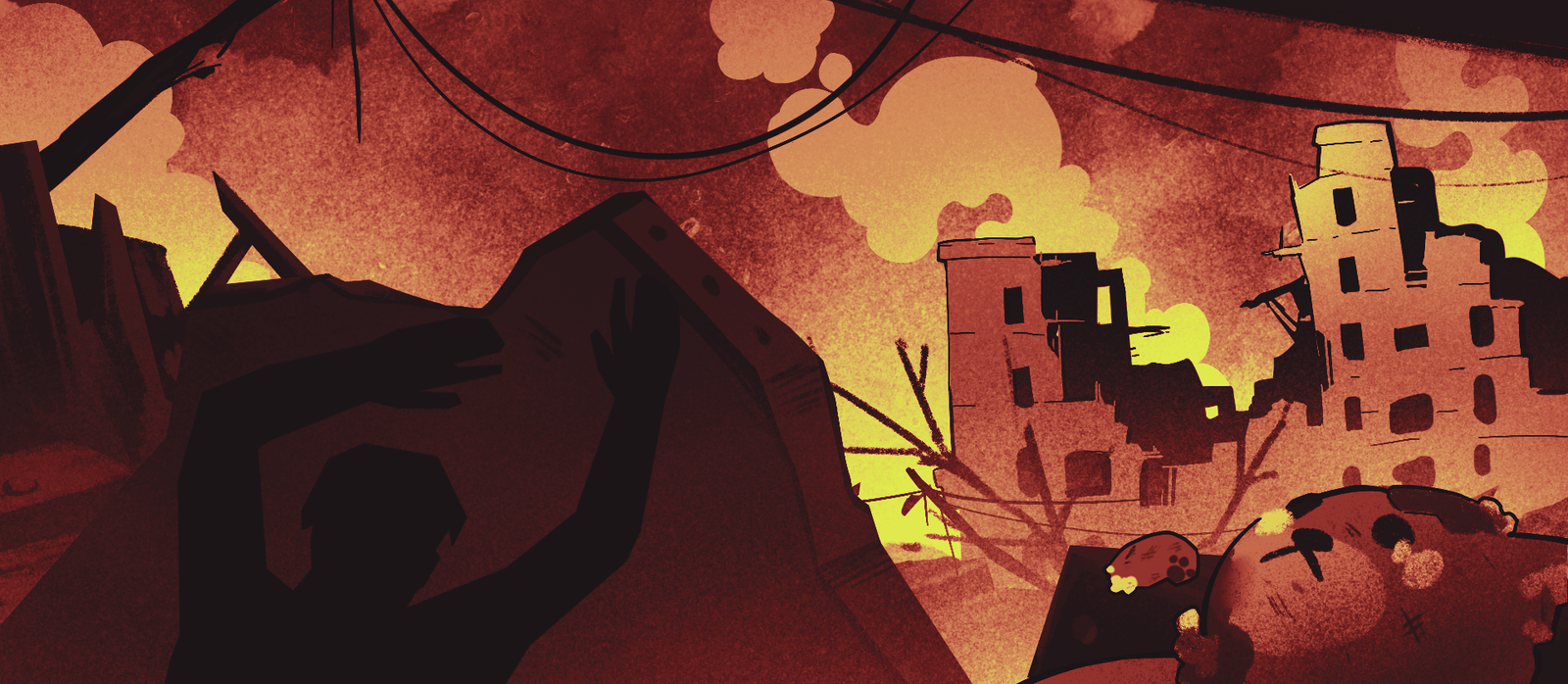 Our answer was to build the story through symbolism and metaphor. Every frame carries intentional meaning. Colors as emotions: Blue and gold represent the Ukrainian flag – the sky, the fields, the pride, and the pain. Reds, yellows, and oranges capture the chaos of explosions and loss, but also the courage and fiery energy of resistance. Shadows and greys symbolize oppression, always countered by the return of light. Abstract storytelling: Instead of showing literal violence, we portrayed the feelings of living through war. The animation transforms destruction into imagery that is both poetic and powerful – one that speaks to the heart more than the eye.